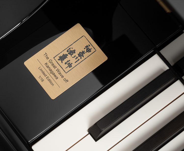 『The Great Wave off Kanagawa』は、江戸時代に活躍した浮世絵師 葛飾北斎の作品「神奈川沖浪裏」をモチーフにした、全世界16台限定のモデルです。葛飾北斎の浮世絵揃物「富嶽三十六景」の中でも、最高傑作と呼ばれる「神奈川沖浪裏」をピアノの屋根の内側に描き、ピアノの側板の内側と椅子のクッションにはプルシアンブルーをあしらっています。ベーゼンドルファーピアノで人気のVCシリーズ「214VC」をベースに装飾を施し、”ウィンナートーン”と呼ばれるベーゼンドルファーらしいあたたかな音色に加え、煌びやかな響きと芸術性を兼ね備えます。さらに、自動演奏機能を搭載し、ベーゼンドルファーアーティストやラフマニノフ、ルービンシュタインといったピアニスト本人による演奏データなど1000曲以上のコンテンツをお楽しみいただけます。