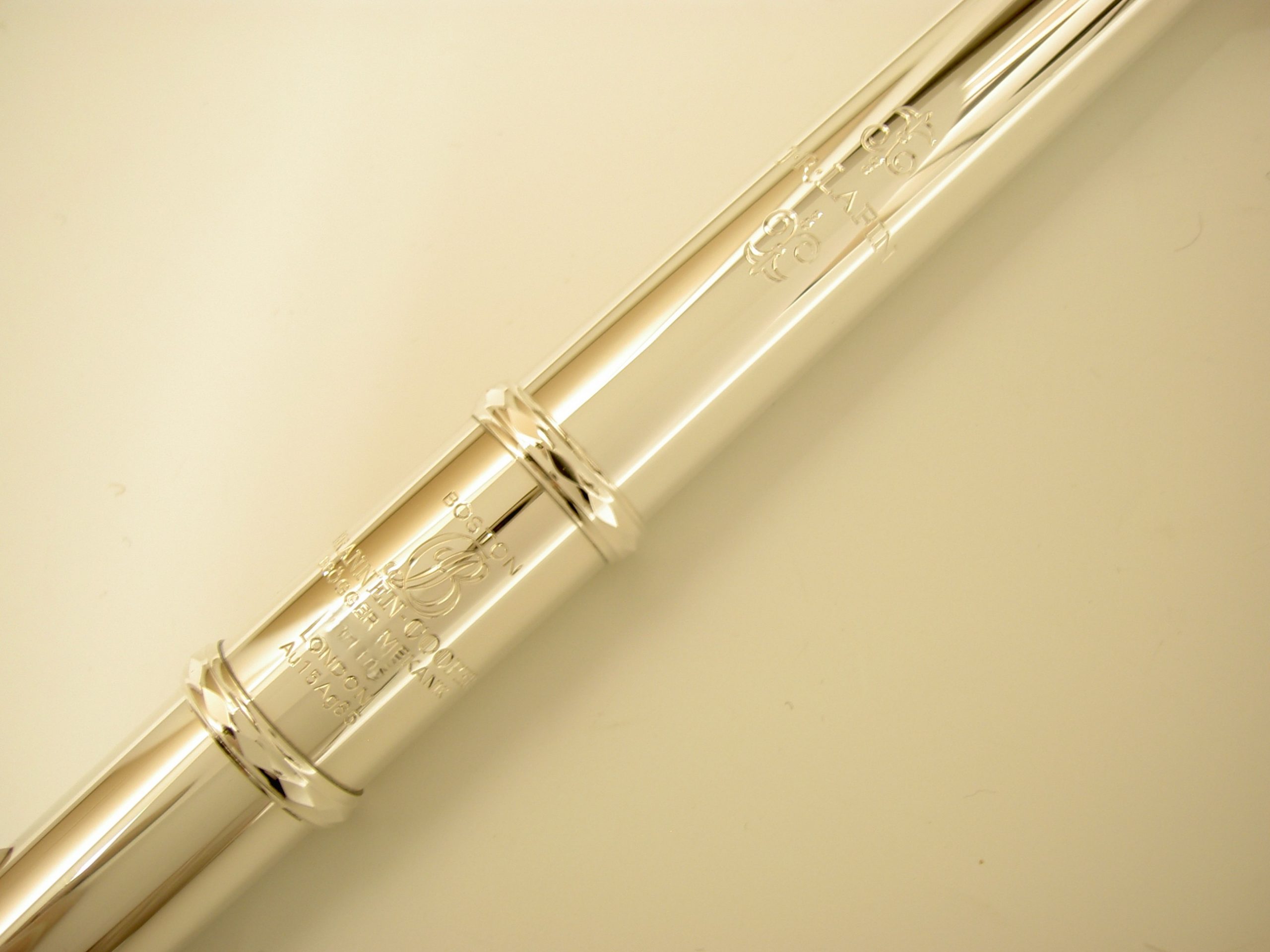 銀製頭部管のライザー(管体とリッププレートをつなぐ煙突)部分に、金やプラチナの材質を施したり、リッププレートが金や木でできているモデルもございます。