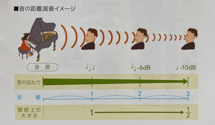 「音のエネルギーは距離の2乗に反比例する」